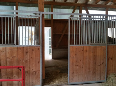 Ab sofort 3 Auslaufboxen auf Bio- Bauernhof zu vermieten (Boxe 12 qm Auslauf 9 qm) -Sandplatz vorhanden 20*30m -Idyllisches, grösszügiges Reitgebiet -Vollpension -Frühling bis Herbst Tagsüber oder Nachts in der Gruppe auf der Weide -Im Winter halbtags in der Gruppe auf dem Sandplatz -Sattelschrank steht zur Verfügung