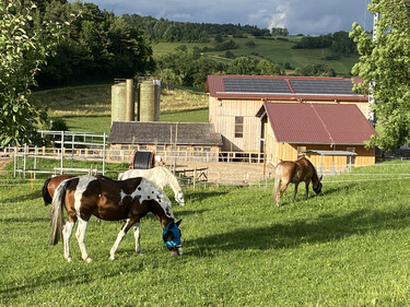 Wir, ein kleiner Landwirtschaftsbetrieb in Zeihen, haben in unserem Gruppenlaufstall / Aktivstall Pensionsplätze für Wallache und Stuten frei. Geniessen Sie und ihr Pferd unseren wunderschön gelegenen Bio Landwirtschaftsbetrieb in Zeihen: