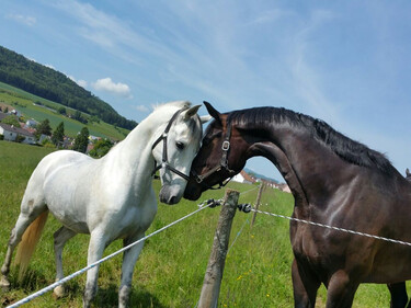 Willkommen auf unserem idyllisch gelegenen, ruhigen, familiären Pferdehof, wo sich alles um das Wohl der Pferde dreht. Bei uns findet ihr Pferd Erholung und Entspannung in schönen, ruhigen Auslaufboxen / grosse, gesicherte und mit Kamera austattbare Abfohlboxen / eine separate Hengstboxe mit sehr grossem Auslauf / zwei Offenställe für Kleingruppe (2-4 Pferde).Von unserem Stall aus reiten Sie direkt los ohne eine Strasse zu überqueren und können stundenlange Ausritte in einem wunderschönen, weitläufigen Reitgebiet geniessen. Was wir bieten:- grosse, helle Auslaufboxen mit Gummimatten / Einstreu Bio-Waldboden oder Stroh- Sommer-und Winterweide- Pferdeheu aus Eigenproduktion- 3 x täglich Kraftfutter (eigenes darf mitgebracht werden) und Heu- 2 x täglich Boxen misten sowie Bollen nehmen beim Mittagsstall- beleuchteter Reitplatz 20 x 40m mit Swing Ground (ganzes Jahr reitbar, gefriert nicht)- 2 Wasch-und Putzplätze- grosse Sattelkammern mit genügend Stauraum für Material (1 grosser Schrank, 2 Sattelhalter, 3-4 Zaumzeughalter pro Pensionär)- Reiterstübli mit Lavabo und WC- Anhängerparkplatz- Beritt / Betreuung der Pensionspferde bei Ferienabwesenheit- Reitunterricht / Hilfe bei PferdeausbildungRufen Sie uns an unter Tel. 079 955 76 72 um einen unverbindlichen Besichtigungstermin zu vereinbaren. Wir freuen uns auf Ihren Besuch.