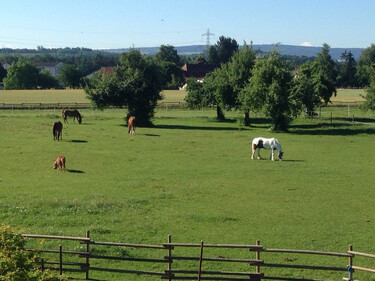 Wir haben zwei Gruppenplätze für Wallache zu vergeben.Unser familiärer Pensionsstall bietet 12 Pferden ein Zuhause, welches aus einem grosszügigen Gruppenstall für ca. 5 Pferde und 8 grossen Boxen (4x4m) mit Paddock (24m2) besteht. Die Gruppe hat eine Liegefläche im Stall und eine überdachte Liegefläche draussen, mit Stroh und Leinenstroh eingestreut. Die Weiden grenzen direkt an den Auslauf und sind, wann immer das Wetter es zulässt, offen. Wenn möglich weiden auch die Pferde in den Boxen in Gruppen.Zu unserer Infrastruktur gehören ein Reitplatz (800 m2), ein überdachter Waschplatz mit Warmwasseranschluss, Solari1um, Sattelkammer mit grossen Sattelschränken, ein Trockenraum für die nassen Sachen und ein Reiterstübli. Wir füttern 4 mal täglich unser selbst hergestelltes Heu.Auf unserem Landwirtschaftsbetrieb, den wir nach den Bio Suisse Richtlinien bewirtschaften, produzieren wir unseren gesamten Futterbedarf selber. Dass wir nur qualitativ hochstehendes Futter verabreichen, ist für uns selbstverständlich.