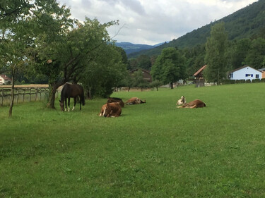 - Gepflegte Weiden (4 ha) mit direktem Zugang zum Stall (Weidegang je nach Witterung)