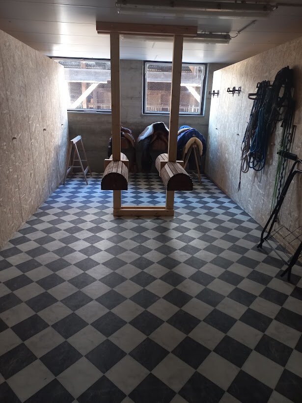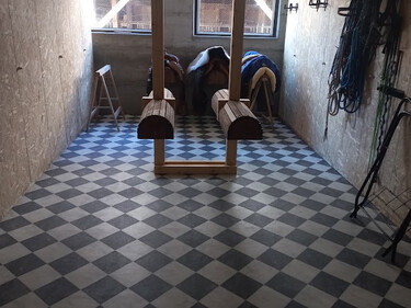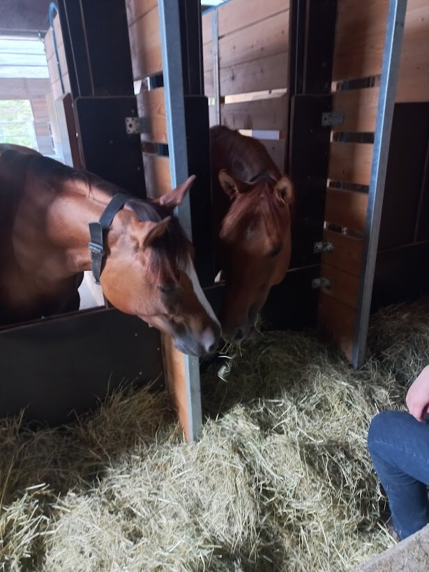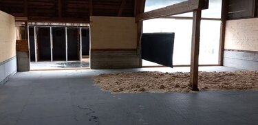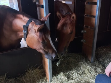 Die Stallung ist hell und lichtdurflutet. Sie bietet viel Platz und durch eine Unterteilung gibt es auch für rangniedrige Pferde Rückzugsmöglichkeiten.