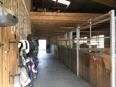 Wir bieten zwei Nebeneinanderliegende Auslauf-Boxen an. Die Boxen eigenen sich für Pferde mit Stockmass bis 165 cm. Unsere Pferde kommen ausser bei Regen und sonntags täglich raus. Neben tollem Reitgelände verfügt der Stall über einen beleuchteten Sandplatz.