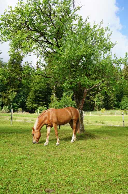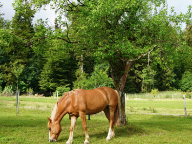 Einstreu, 2 x täglich Misten, 2x täglich Kraftfuttergabe, 2x täglich Bio Heu.