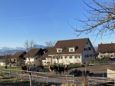 Ab November 2025 wird in unserer kleinen, familiären, gepflegten Pferdepension in 8309 Oberwil bei Nürensdorf eine grosszügige Auslaufboxe mit direktem Weidezugang für Selbstversorger frei. Wir sind eine kleine tolle Stallgemeinschaft, bei der das Pferdewohl im Vordergrund steht. Was wir suchen:🐎 Gesunden Wallach (ohne chronische Vorerkrankungen) mit Widerristhöhe von max. 165cm mit unkomplizierter Besitzerin, welche ein gutes Stallklima ebenfalls schätzt Die Haltung erfolgt als Selbstversorger:💰 Monatlicher Beitrag, CHF 550.– (inkl. Heu, Einstreu)🧹 Optional nach Absprache: Füttern/Misten durch unsere externe Stallfee möglich für 30Fr./Std., jedoch nicht täglich Was wir bieten:🐎 grosszügige Boxe (ca. 20m2) mit Auslauf und direktem Weidezugang, Selbsttränke🏇 Aussenreitplatz zur freien Nutzung (div. Bodenarbeitsmaterial ebenfalls vorhanden)🌾 Einstreu: Sägemehl und Stroh inklusive. (optional vergünstigter Naturbettboden, muss selbst bezahlt werden)💧 Wasch- / Trocknungsraum💧 Waschplatz für Pferde (nicht im Winter)☕ Reiterstübli / WC❤️ Abendlicher Kontrollgang🧹 schöner ordentlicher Stall🚛 grosszügiger Materialschrank und zusätzlicher Platz für Futterablage❤️ herzliches gutes Stallklima mit nur zwei weiteren Pensionärinnen und 3 weiteren WallachenKlein, fein, persönlich.📍 Standort: Erspelweg, 8309 NürensdorfWir freuen uns auf deine Anfrage!