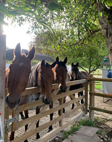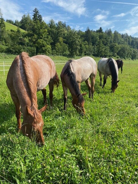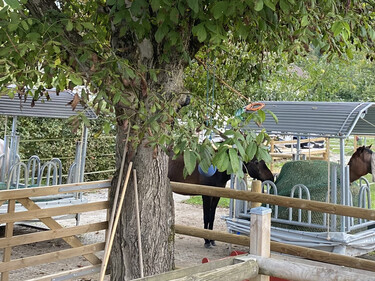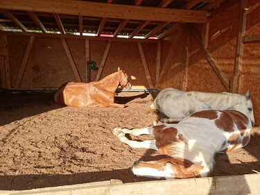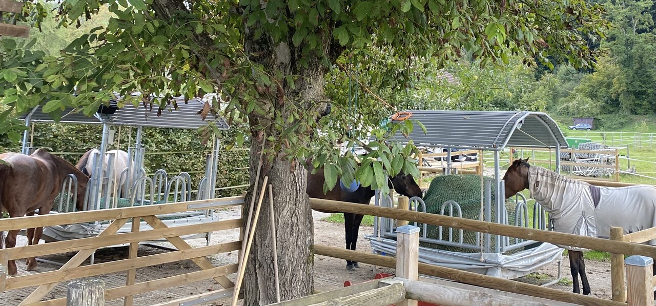 Grosszügiger Offenstall bei Schötz mit viel Auslauffläche, Bewegungsanreizen und viel Weidegang. Es können nur gut sozialverträgliche, nicht zu ranghohe und nicht beschlagene Pferde aufgenommen werden.