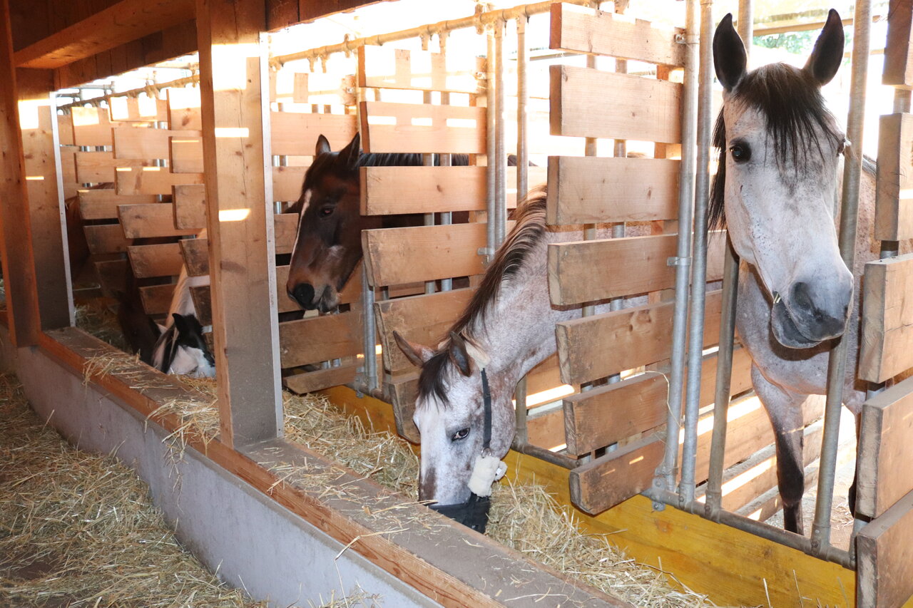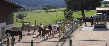 Das Raufutter ist immer verfügbar und wird von uns selbst pferdegerecht produziert. 2 mal im Tag wird bei Bedarf Kraftfutter gegeben. Wir haben einen neu sanierten Reitplatz (20 x 20m) mit Quarzsand/Textilschnitzel und mit Beleuchtung . Sattelkammer, Reiterstübli, Waschplatz und Toilette stehen den Reitern immer zur Verfügung. In unserem Stall sind alle Pferde Barhuf.