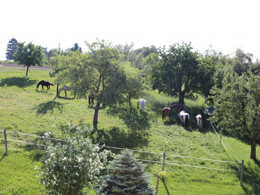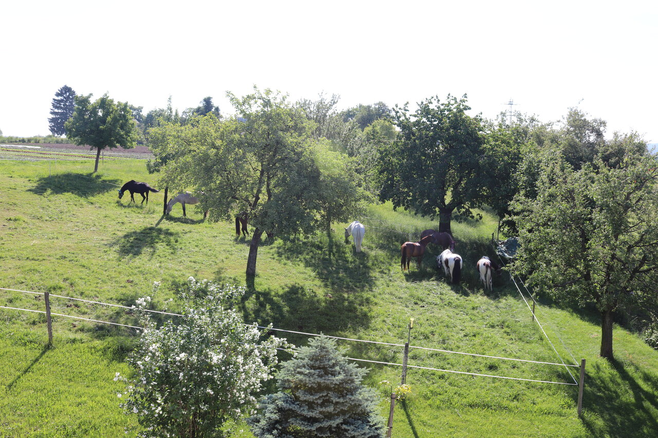 Wir sind ein kleiner Bauernhof in Rümlang mit einem schönen Offenstall für 12 Pferde. Mit unseren grosszügigen Weiden, die an den Stall angrenzen, haben die Pferde bei uns sehr viel Weidegang. Im Winter haben wir jeweils eine Winterweide und können so die Weidesaison ausdehnen.