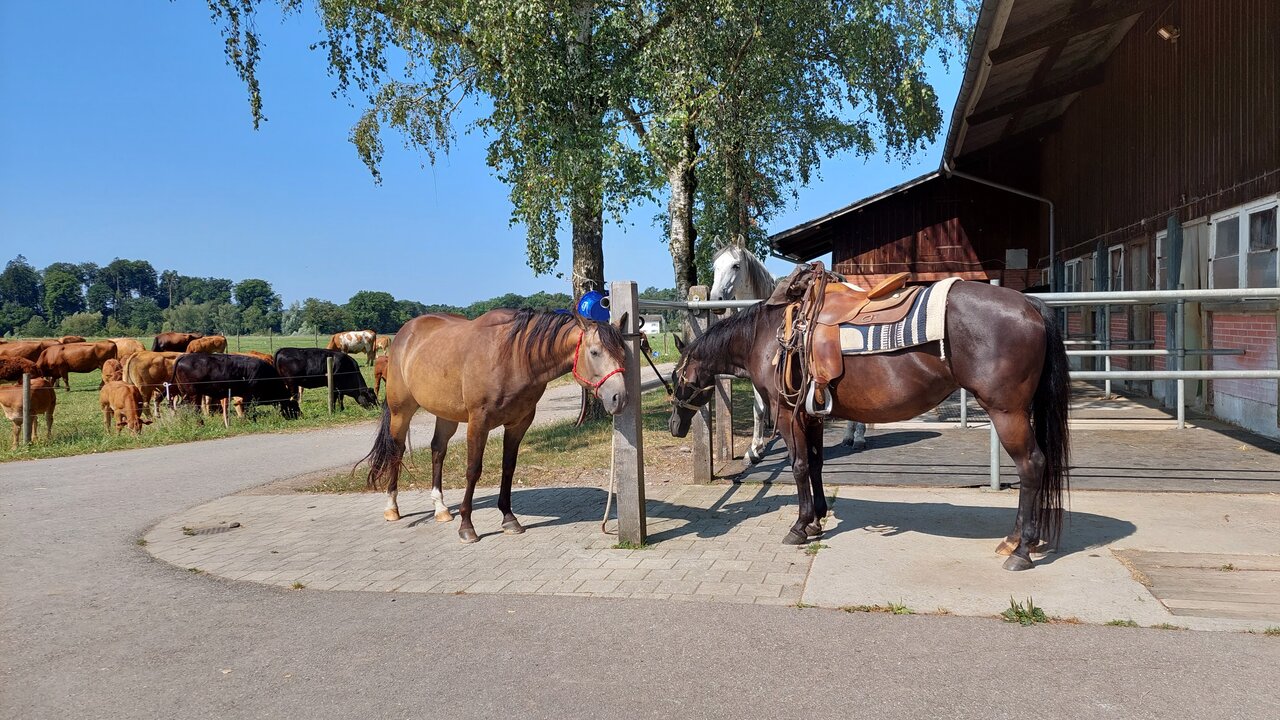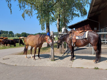 Willkommen auf unserem idyllisch gelegenen, ruhigen, familiären Pferdehof, wo sich alles um das Wohl der Pferde dreht. Bei uns findet ihr Pferd Erholung und Entspannung in schönen, ruhigen Auslaufboxen / grosse, gesicherte und mit Kamera austattbare Abfohlboxen / eine separate Hengstboxe mit sehr grossem Auslauf / zwei Offenställe für Kleingruppe (2-4 Pferde).Von unserem Stall aus reiten Sie direkt los ohne eine Strasse zu überqueren und können stundenlange Ausritte in einem wunderschönen, weitläufigen Reitgebiet geniessen. Was wir bieten:- grosse, helle Auslaufboxen mit Gummimatten / Einstreu Bio-Waldboden oder Stroh- Sommer-und Winterweide- Pferdeheu aus Eigenproduktion- 3 x täglich Kraftfutter (eigenes darf mitgebracht werden) und Heu- 2 x täglich Boxen misten sowie Bollen nehmen beim Mittagsstall- beleuchteter Reitplatz 20 x 40m mit Swing Ground (ganzes Jahr reitbar, gefriert nicht)- 2 Wasch-und Putzplätze- grosse Sattelkammern mit genügend Stauraum für Material (1 grosser Schrank, 2 Sattelhalter, 3-4 Zaumzeughalter pro Pensionär)- Reiterstübli mit Lavabo und WC- Anhängerparkplatz- Beritt / Betreuung der Pensionspferde bei Ferienabwesenheit- Reitunterricht / Hilfe bei PferdeausbildungRufen Sie uns an unter Tel. 079 955 76 72 um einen unverbindlichen Besichtigungstermin zu vereinbaren. Wir freuen uns auf Ihren Besuch.