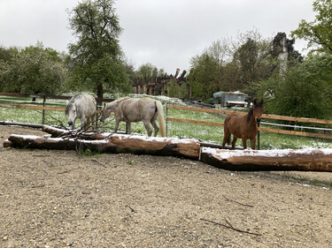 Für 1-3 Ponies, max 1,50 wären Plätze frei im Gruppenstall zu 3 Shettys.
