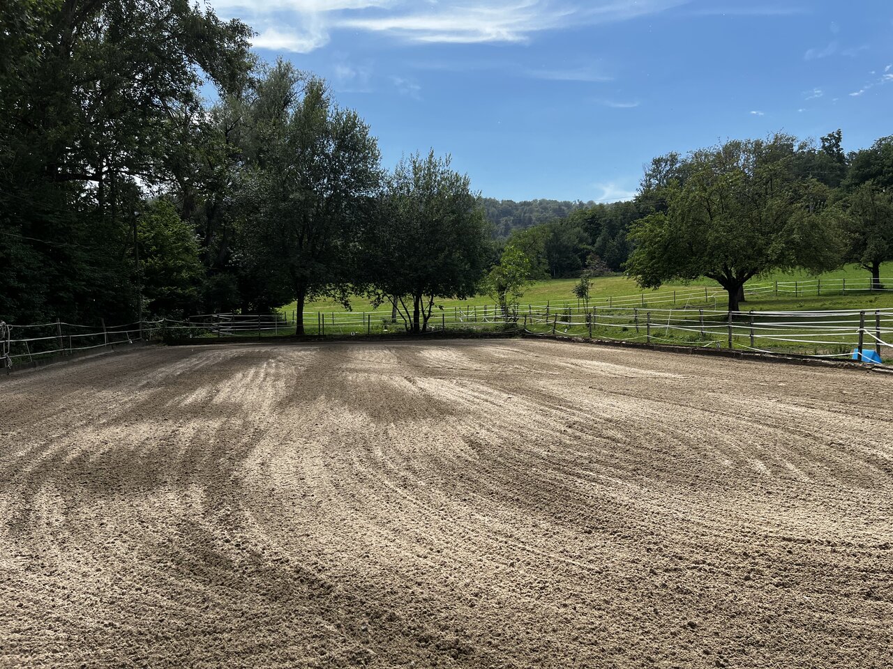 In wenigen Reitminuten hat es eine Reithalle und Dressurplatz beim Nachbar.