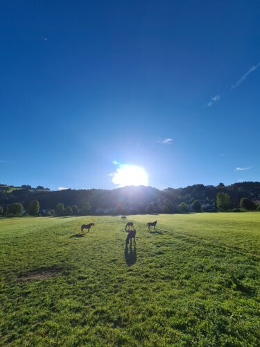 Wir sind ein kleiner Familiärer Stall mit 30 Pferden und Ponys und haben Platz für Senioren. Einstreu kann gewählt werden zwischen Kurzstoh und Sägemehl. 2x täglich Heu oder Heulage. 1x täglich Kraftfutter (Versch. Müesli dem Pferd angepasst, Mineralstoff und Leinsamen, eigenes Zusatzfutter kann mitgebracht werden) Weidegang in der Gruppe. Sattelschrank vorhanden(Eigener Sattelschrank kann mitgebracht werden)