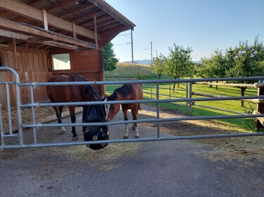 Islandpferdehof Olnbogi In unserem schönen Offenfrontstall (erbaut 2018 / 2024) mit grossem Allwetterauslauf haben wir zur Zeit noch Platz frei für 4-5 Islandpferde(Wallache oder Stuten; keine Hengste)Unseren Hof liegt in der wunderschönen Linthebene. Auf unserem Familienbetrieb leben nebst den Pferden auch Milchkühe, einigen Hühnern, 2 Katzen und unserem Hofhund "Daisy" auf unserem Hof. Der Hof Olnbogi liegt idyllisch zwischen dem Zürich- und dem Walensee auf der rechten Seite der Linth abseits von Strassen. Die Autobahnanschlüsse Reichenburg, bzw. Schmerikon liegen rund 10 Minuten von unserem Hof. Wir sind aber auch mit dem Fahrrad sehr bequem zu erreichen. Vom Bahnhof Benken sind wir in rund 30 min. zu Fuss erreichbar und auch eine Postautohaltestelle liegt lediglich 1,5 km vom Hof entfernt. Die sehr abwechslungsreiche Gegend lädt zu längeren oder kürzeren Spaziergängen, Ausritten oder Ähnlichem ein. Lange, geraden Kiessträsschen sind bei uns genau so zu finden, wie herrliche, ruhige Waldwege. Was wir bieten:• Unser Stall trägt das Label "der gute Stall STS" vom Schweizer Tierschutz • mehrere Tränken mit Frischwasser• wenn möglich das ganze Jahr täglich kontrolliert auf die Weide • 24h Heu unser Heu wird zu 100% selber von uns auf dem Betrieb produziert.• 24 Std. erstklassiges Futterstroh zur Beschäftigung• Salzleckstein und Mineralleckstein zur freien Verfügung• es wird mind. 3-mal täglich gemistet• Separation- /Krankenbox kameraüberwacht• Roundpen Ø 14• ein imposanter Laubbaum im grossen Auslauf sorgt im Sommer für herrlich Schatten, weitere werden noch gepflanzt.• Sorgfältige Integration neuer Herdenmitgliedern• bei uns sind beschlagene und unbeschlagene Islandpferde willkommenEine kleine, beheizten Sattelkammer steht selbstverständlich auch zur Verfügung. Bei Bedarf werden die Pferde gegen Sommerekzem gedeckt.Handy: 079/502 91 27 Gerne beantworte ich auch Ihre WhatsApp