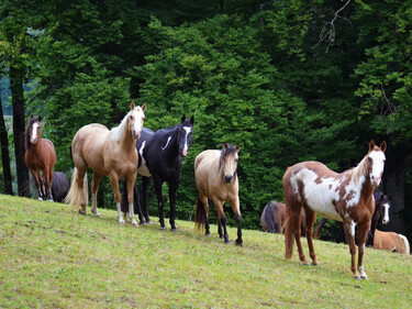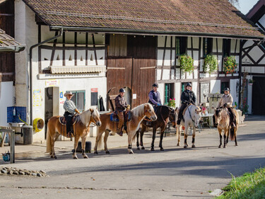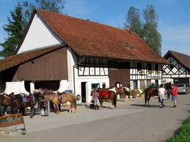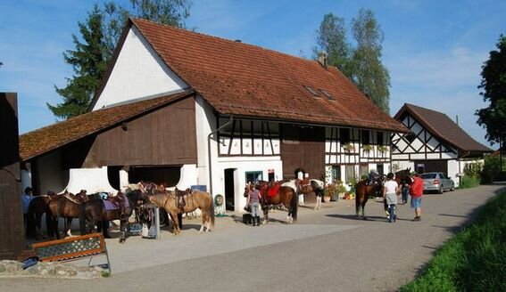 Artgerchte Stallanlage mit verschiedenen Laufställen mit Tiefstreue und permanent zugänglichen, befestigten Ausläufen. Die grosszügige Pferdeanlage sorgt auch im Winter bei geschlossenen Weiden für ausreichend Bewegung. Während der Saison bieten rund 8 ha Gras- und Weideland unseren Pferden einen natürlichen Lebensraum und eine gesunde Futtergrundlage.