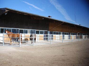 Auf unserer gepflegten Reitsportanlage mit Reithalle 20x40 und Aussenplatz 60x30, vermieten wir Boxen mit Auslauf.
