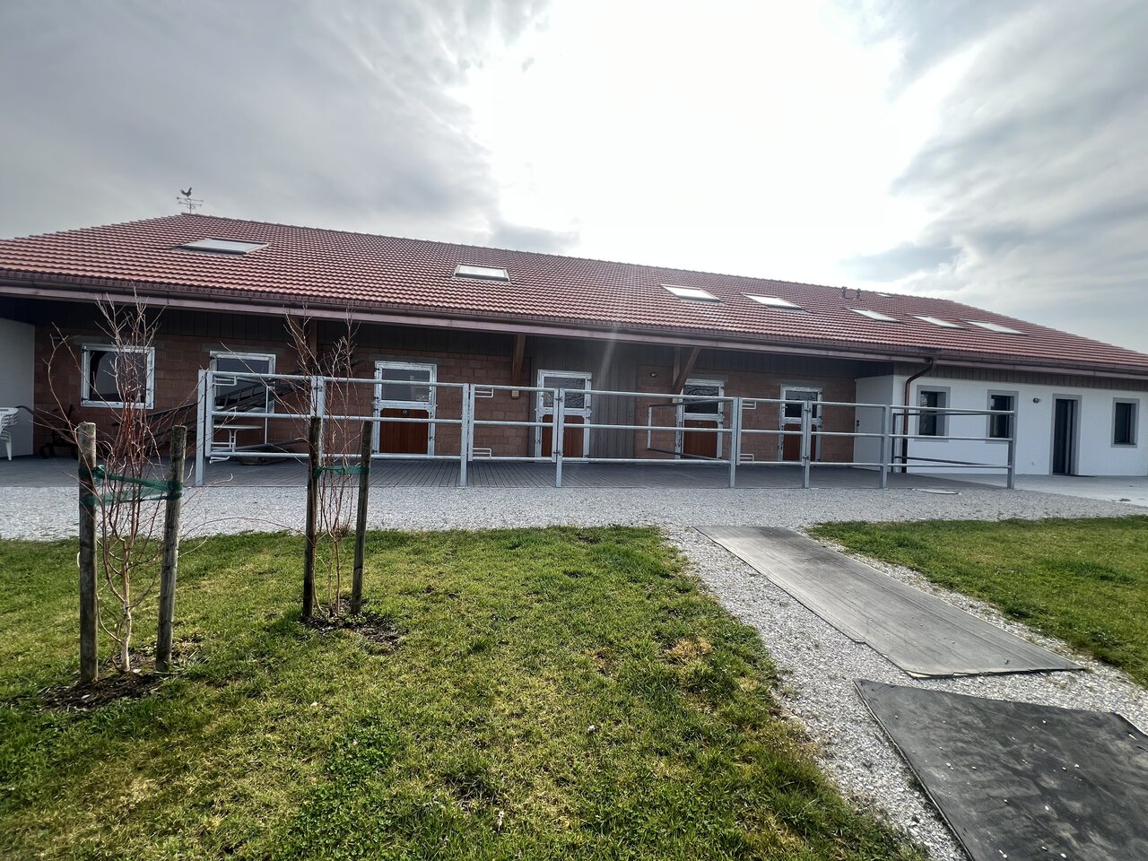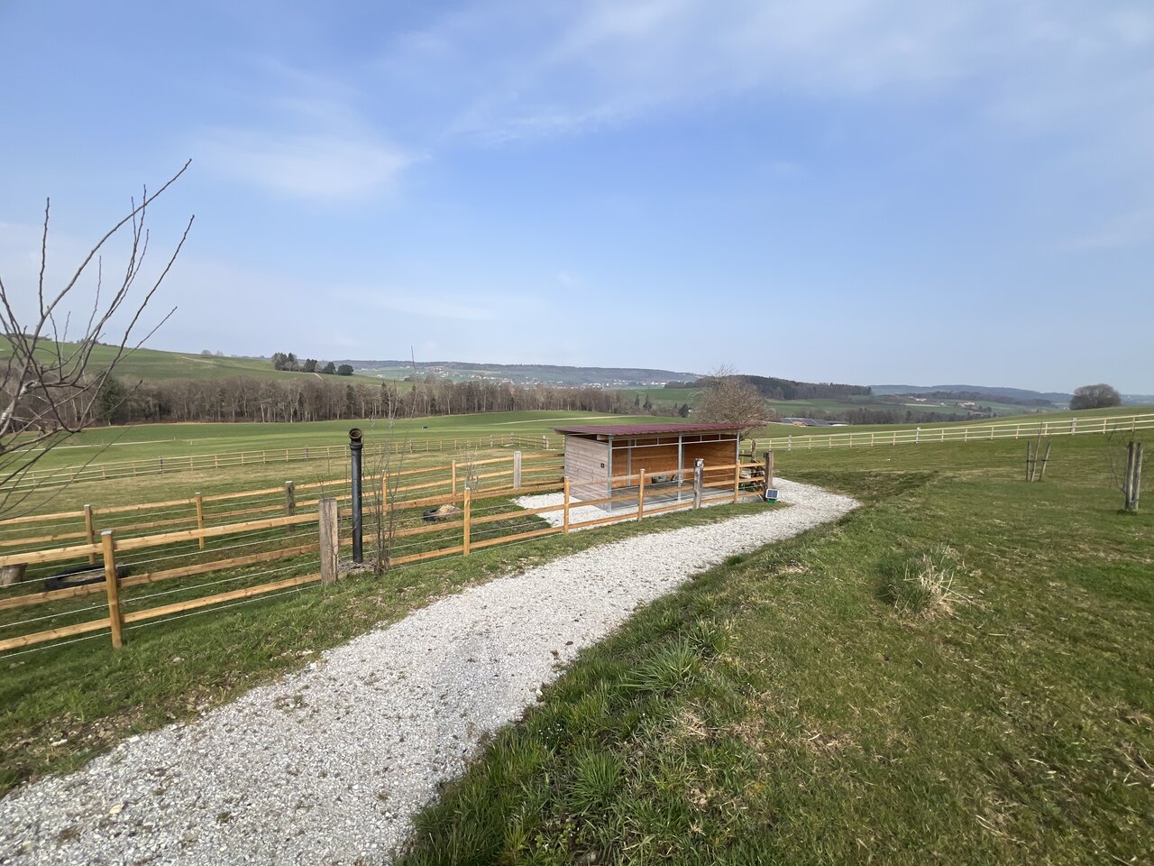 Parking for cars and cameo. Security lights and camera. Beautiful views and gallery above stables. New 1 bedroom apartment for use. Also separate large apartment with 7 places. Property is close to forests for riding out. Approximately 30 mins to Chalet a gobet and Avenches. Price is negotiable
