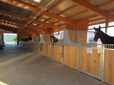 Zu unserer Infrastruktur gehören ein Reitplatz (800 m2), ein überdachter Waschplatz mit Warmwasseranschluss, Solarium, Sattelkammer mit grossen Sattelschränken, Reiterstübli und ein Trockenraum für die nassen Sachen. Wir füttern 4 mal täglich Heu.