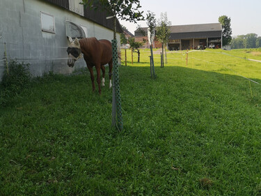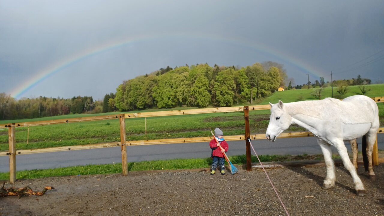 Was wir sonst auch haben ist: Waschplatz, Solarium, Waldbodeneinstreu, eigenproduziertes Heu, Wechselweiden, Anhängerplatz, Reiterstübli, schönes Reitgebiet und eine Reithalle in 30min erreichbar mit Pferd.
