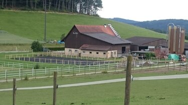 Unser Stall liegt ruhig und idyllisch im Grünen, aber dennoch zentral im Zürcher Unterland (Rafz). Öffentliche Verkehrsmittel (ca. 15min) und Parkplätze sind in der Nähe vorhanden.