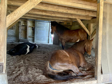 - Liegefläche mit Bio-Waldboden-Einstreu