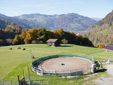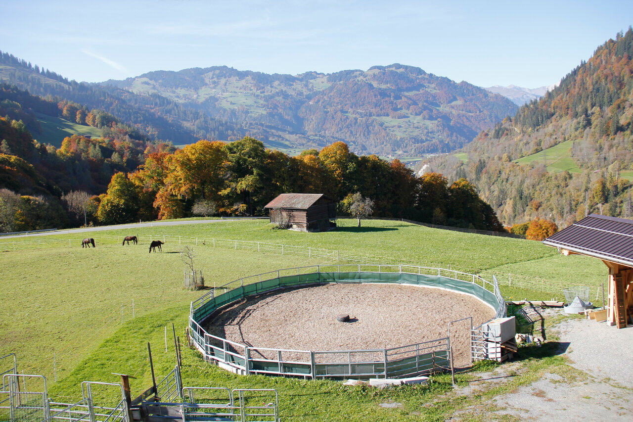 Gruppenhaltung mit täglichem Weidezugang (ausser bei misslichen Bedingungen). Für Pensionäre und als Altersplatz. Leichtfuttrige Gruppe mit zeitgesteuerten Raufeln, schwerfuttrige Gruppe mit Heu ad libitum. Übungsplatz mit Roundpen und einigem mehr. Mehr Info findest du auf der Homepage https://hof-aura-fideris.com/