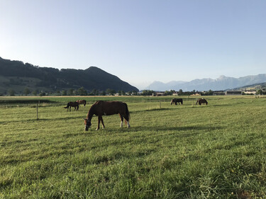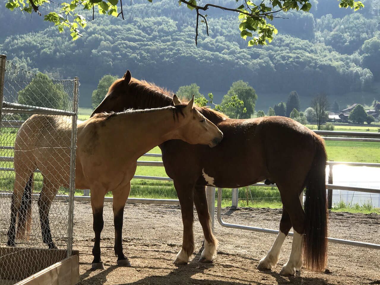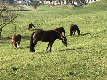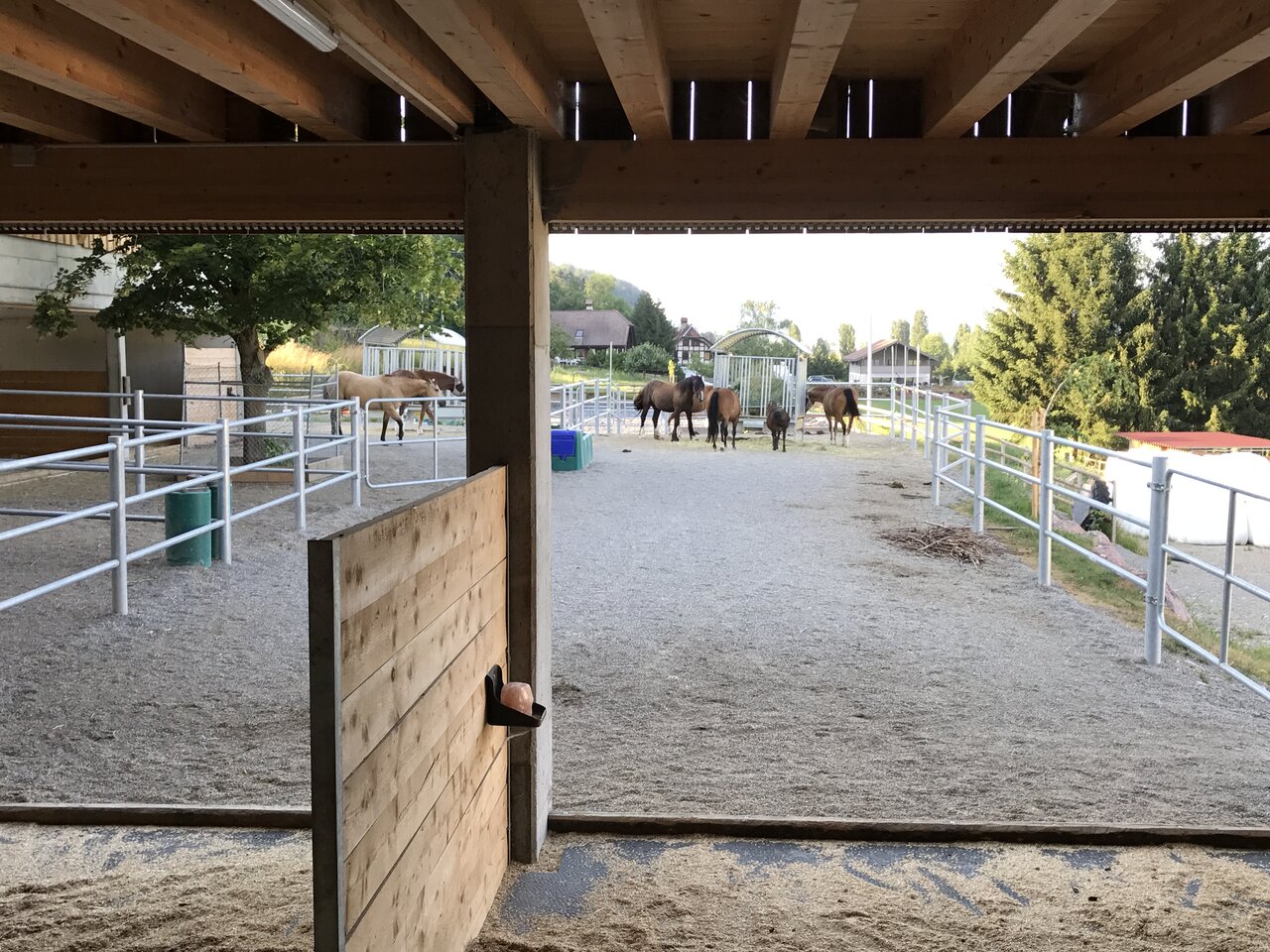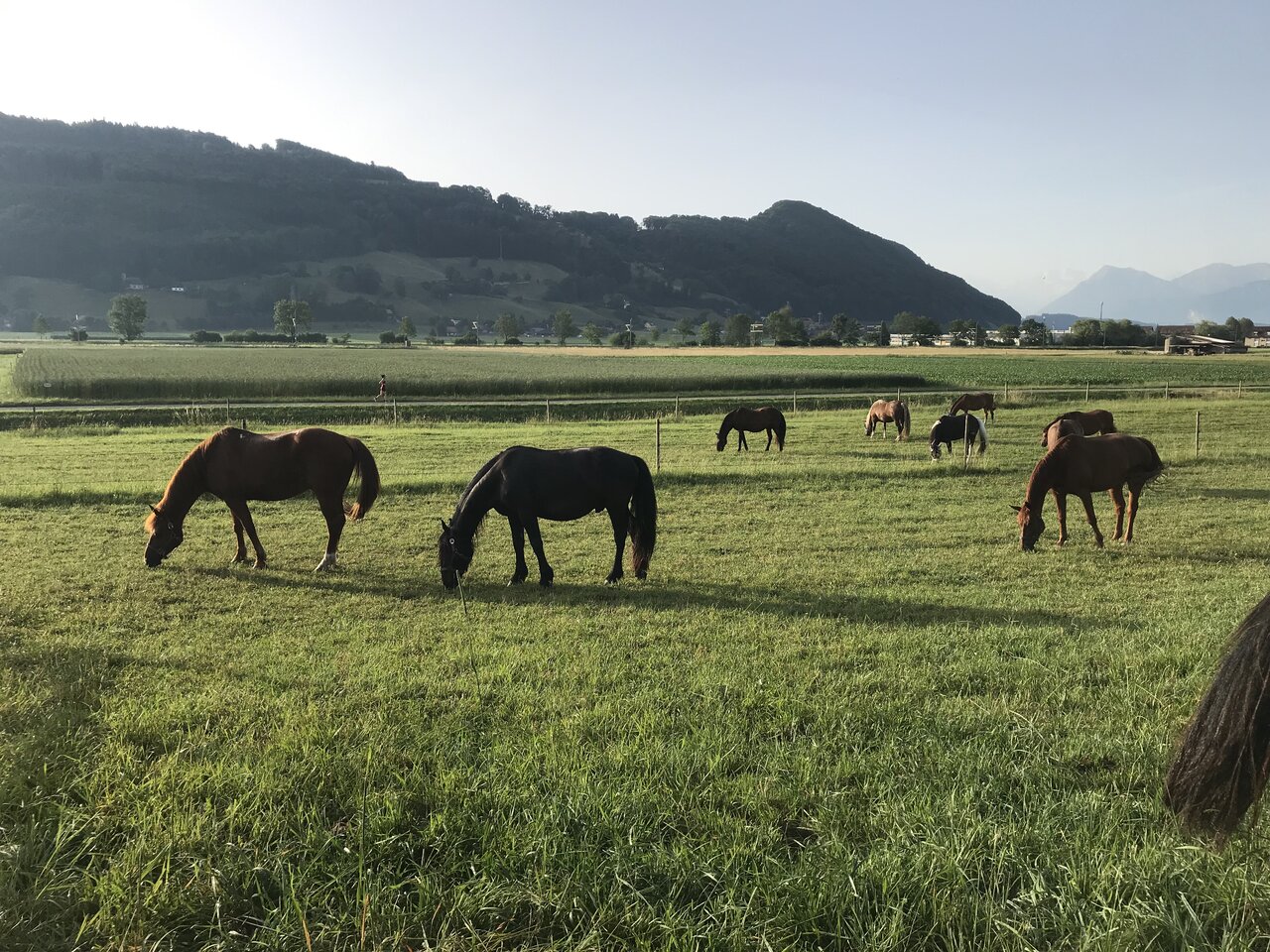 Wir bieten: 24h Heu (Netz) und Stroh, frostsichere Tränken, wann immer mögl. ganzjähriger Weidegang in Gruppen, gepflegte Weiden, Reitplatz 20m x 20m beleuchtet, sauberer & trockener Liegebereich 2 x tägl. misten, pers. Materialschrank, gedeckter Waschplatz, kleine Herden mit max. 6 Pferden, saubere Anlage, Anhänger zur Mitbenutzung, mit Eisen möglich (nach Integrationszeit), alle Reitstile und Pferde willkommen, offene & transparente Stallbesitzer, selektive Entwurmung, Integrationsboxen, sorgfälltiges Anweiden, Krankenboxe, kleines Reiterstübli, grosses, schönes, direkt zugängliches Reitgebiet.
