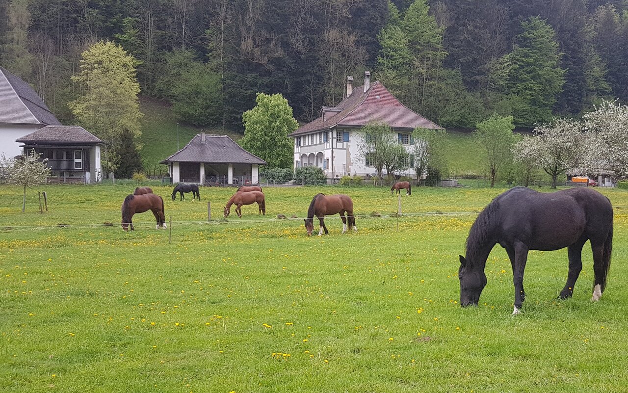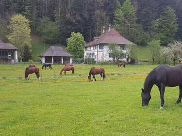 Auf unserem Bauernhof mit Pferdehaltung sind momentan 2 Pferdeboxen frei. Dorf Eggiwil. 2 Minuten von ÖV. Wir Bieten: Grosse Einzelbox 3-4 mal täglich Fütterung und misten Gruppenauslauf täglich Weidengang von Frühling bis Herbst Winterweide je nach Witterung Roundpen 20m Durchmass geeignet zum Reiten, Bodenarbeit etc. Putzplatz und Waschplatz