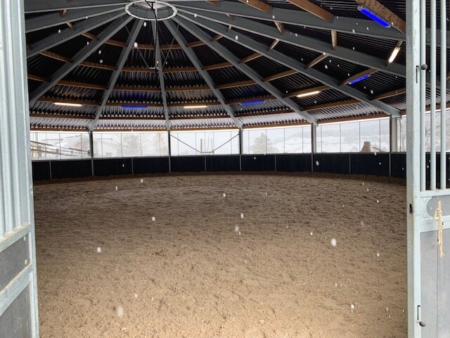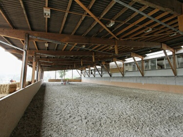 - Grosse Longierhalle 18 Meter, auch für Freilauf der Pferde, mit zusätzlicher Relax-Beleuchtung