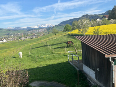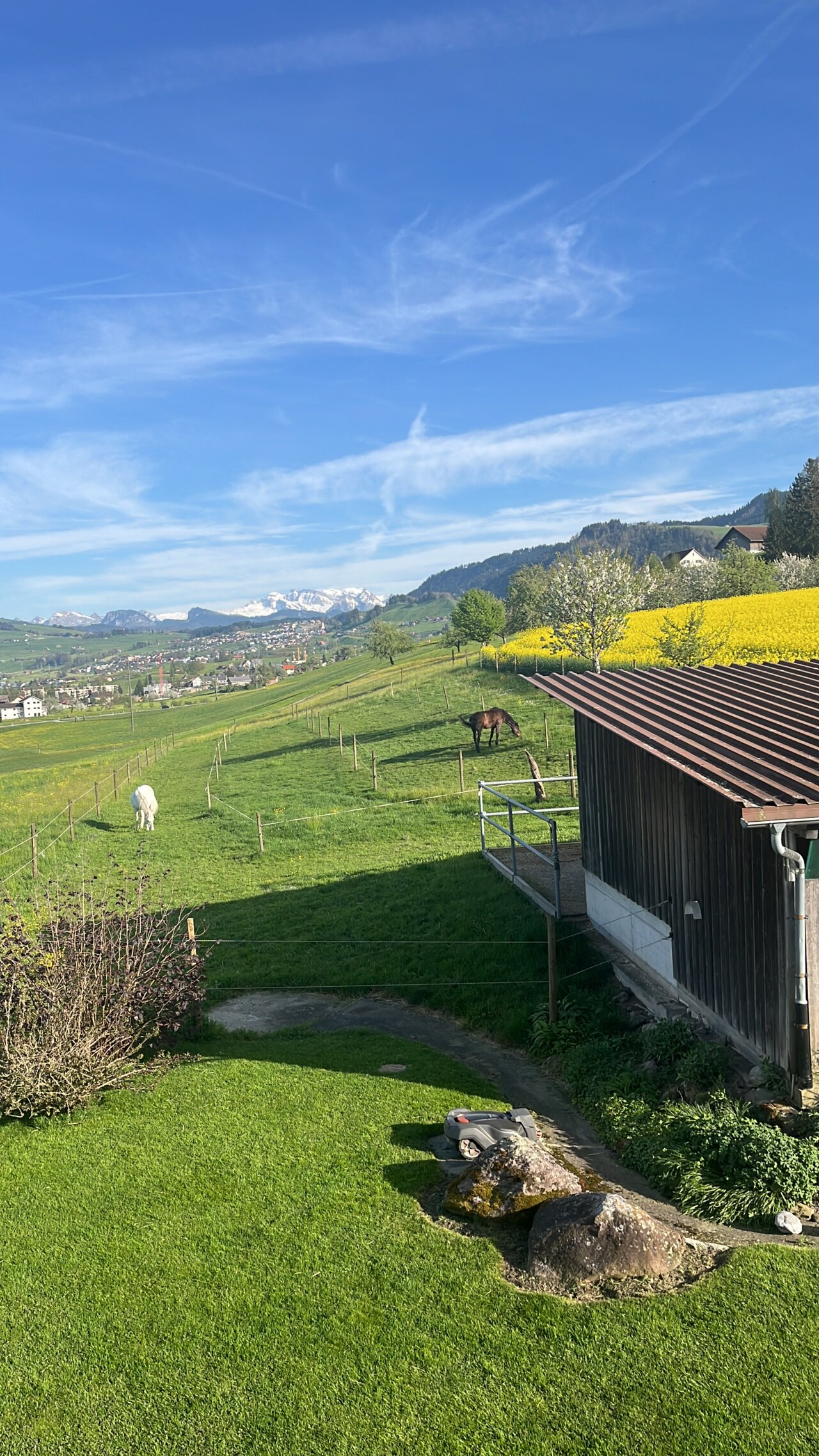Es ist ein Zweierstall, liebst Du Ruhe und Frieden?Keine Hektik oder Zickenkrieg dann bist Du hier genau richtig. Ich wohne direkt beim Stall und mache auch Abends um ca 21,00 Uhr nochmals einen Kontrollgang, nehme die Bollen und füttere nochmals Heu für die Nacht. Die Pferde werden ansonsten 3x am Tag gefüttert. Kraftfutterzuschlag nach Absprache.Weidegang so oft es geht. Jedes Pferd hat zwei Weiden direkt vor der Auslaufboxe. Die Reithalle kann dazugemietet werden und ist in 15 Minuten Ausreitdistanz erreichbar, sowie zwei grosse Sandplätze. Mein charmanter 20 Jähriger PRE ist sehr verträglich und lieb. Die Pferde sind meine Leidenschaft und ich betreibe grosses Engagement, dass es Dir und deinem Pferd wohl ist bei uns. Klein aber Fein.Wir würden uns freuen Dich in unserer kleinen Familie willkommen zu heissen.