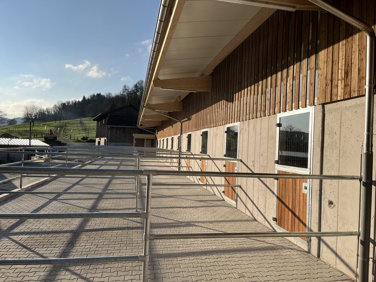 Auslaufboxenstall mit 20 grosszügigen und hellen Einzelboxen mit direktem Auslauf (ab 1. Mai 2025 bezugsbereit)