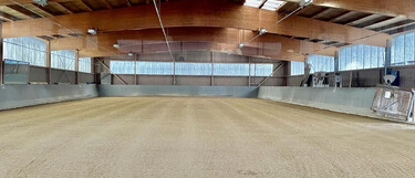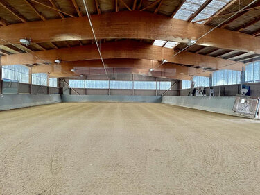 Infrastruktur: qualifiziertes Fachpersonal, gepflegte Reithalle (Hindernissmaterial vorhanden) Sandplatz, Führmaschine (nicht im Pensionspreis inbegriffen) Solarium (nicht im Pensionspreis inbegriffen) Reiterstube, Anhängerparkplatz Fr. 20.00 pro Monat, WC beheizt.