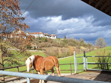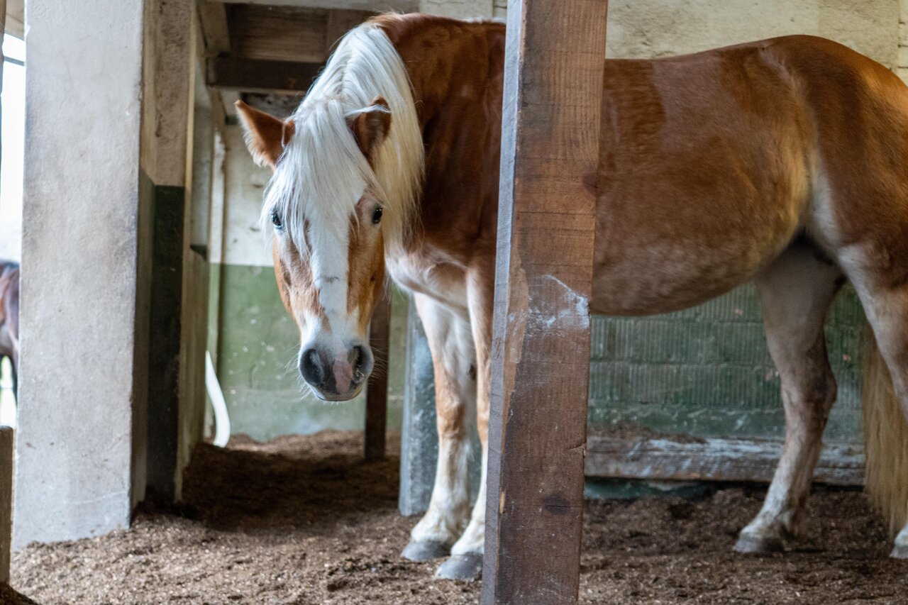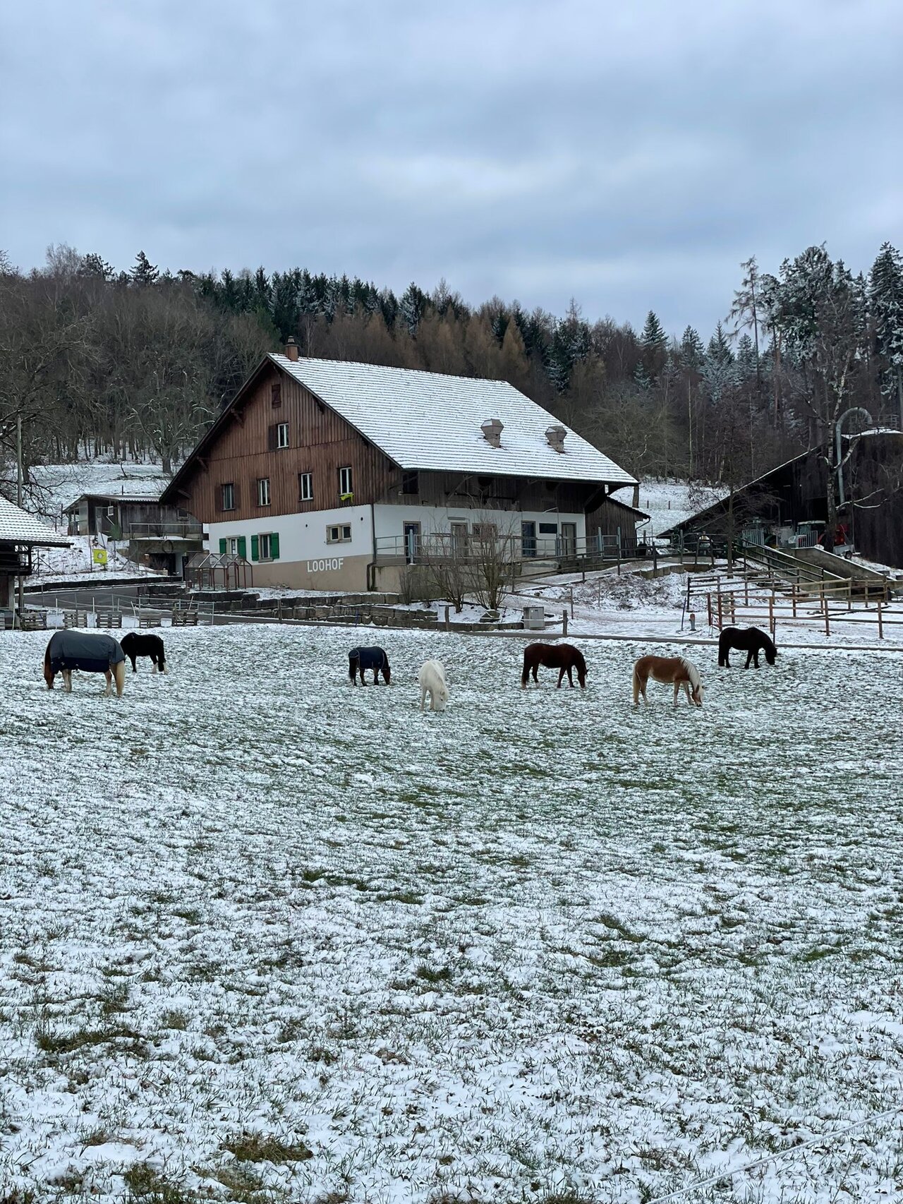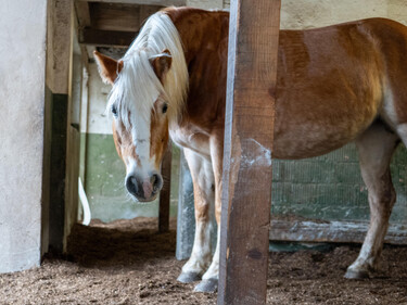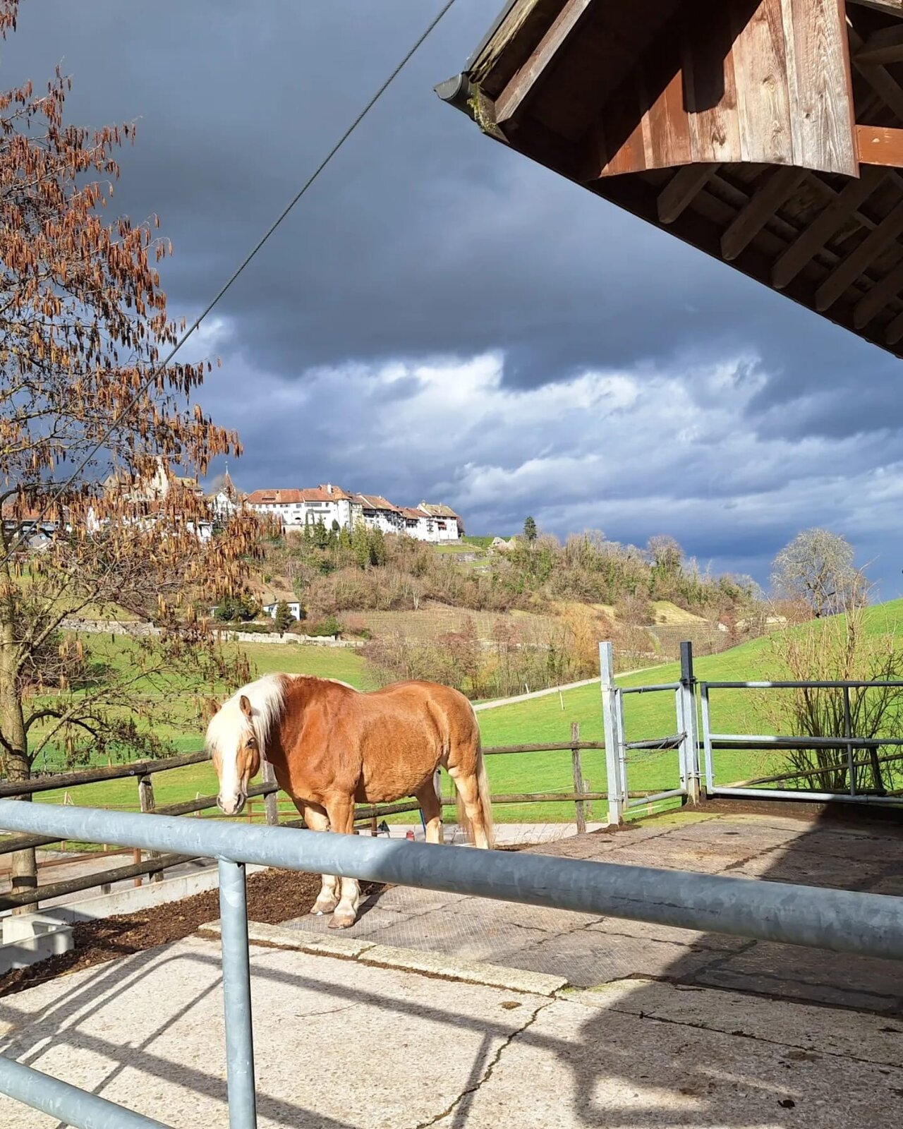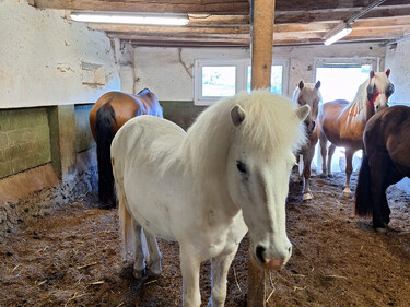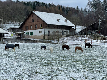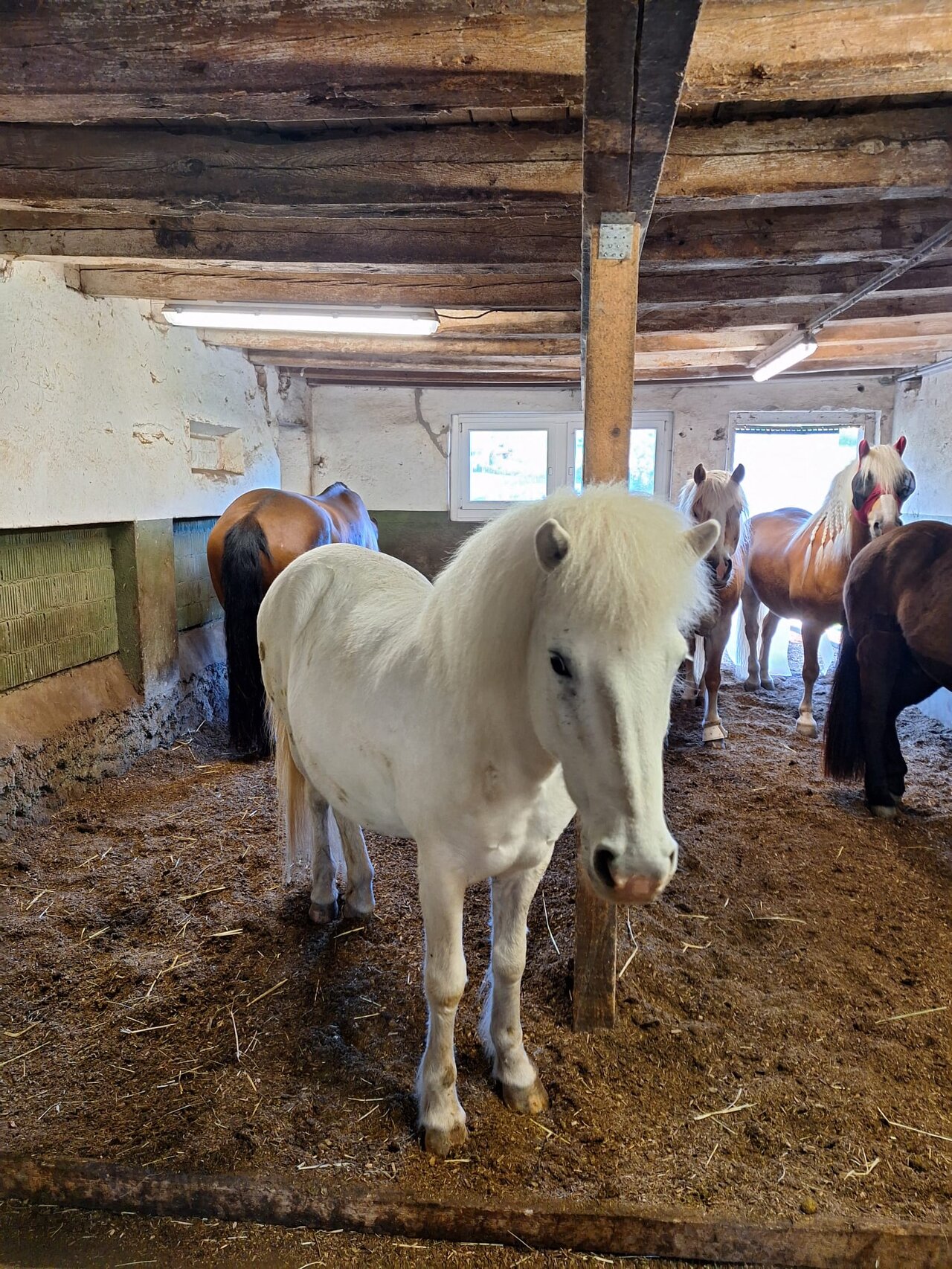 Gemischte Gruppe momentan mit Freiberger, Haflinger und Isländer. Maximale Widerristhöhe 162cm. Platz für total 11 Pferde.