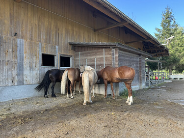 Weidegang von Frühling bis Spätherbst, auf grosszügigen Weiden. Einzel oder Gruppenweise möglich