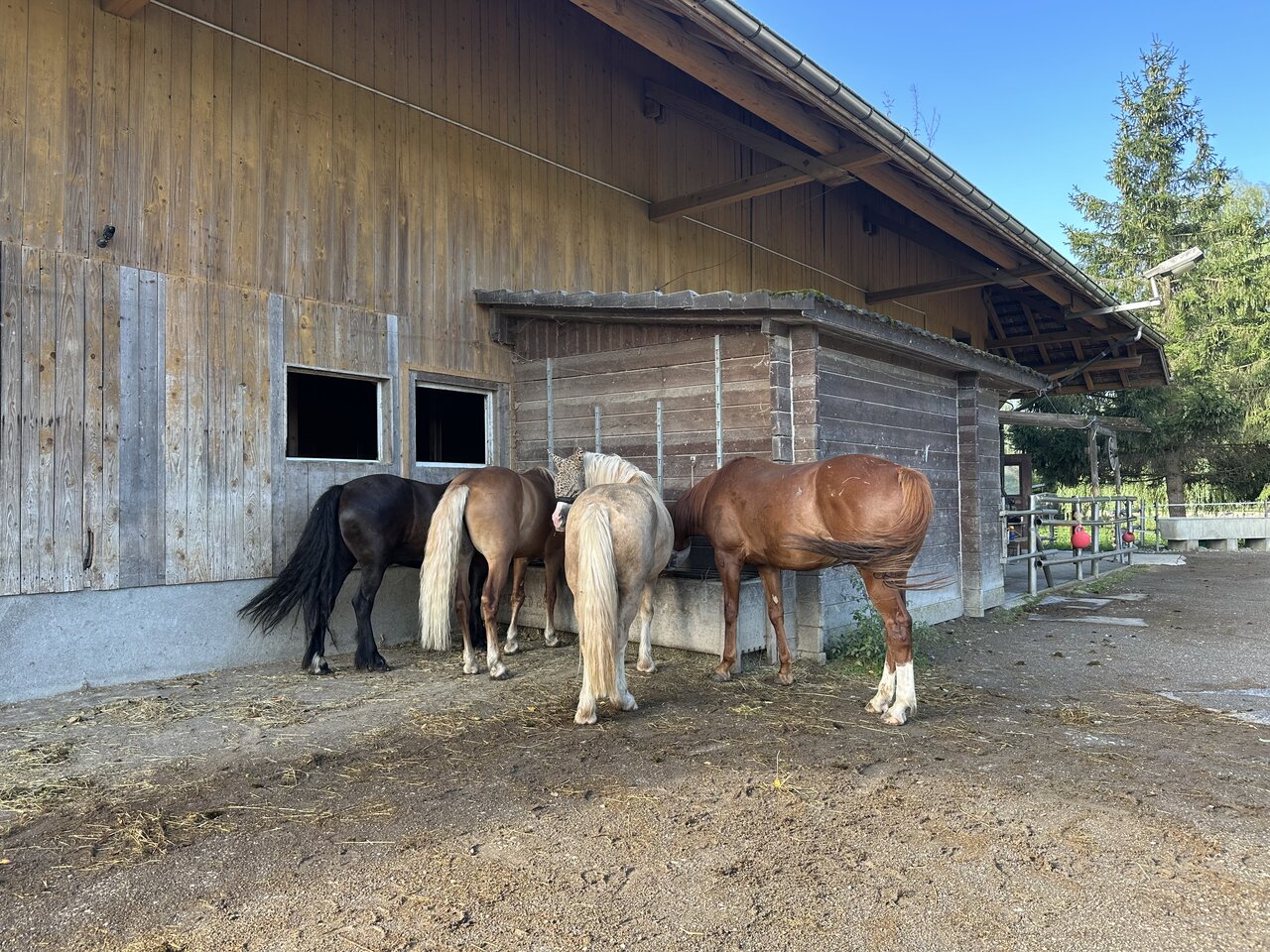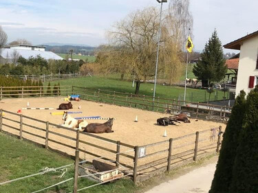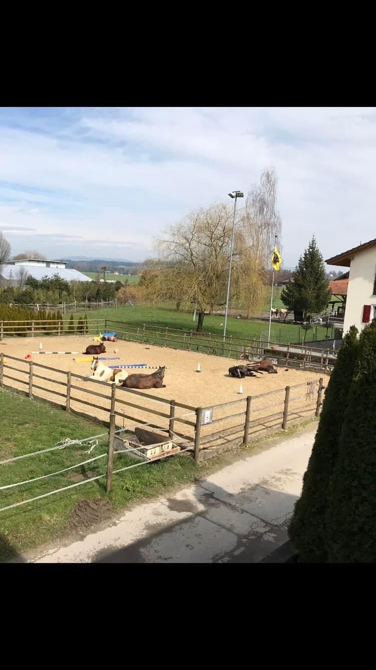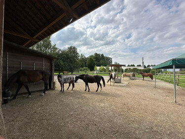 Für einen kontaktfreudigen, sozialen, verspielten Wallach 🐎 biete ich eine komplett überdachte Auslaufboxe direkt angrenzend der Gruppenhaltung mit 12 Wallachen und 1 Hengst. Bei dieser Auslaufboxe ist sicher immer was los 😉