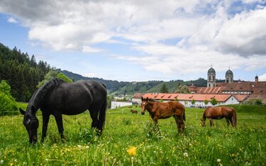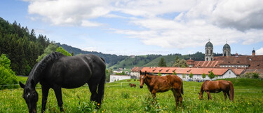 Der Marstall Kloster Einsiedeln, das älteste noch betriebene Gestüt in Europa, empfängt Sie und Ihr Pferd an traumhafter Lage.