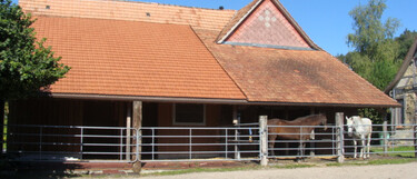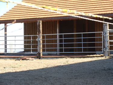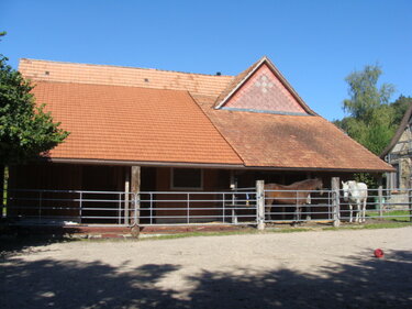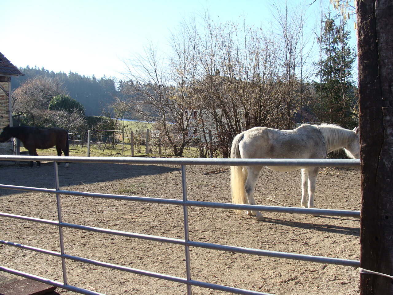 Kleiner Privatstall mit 4 Boxen, Allwetterplatz, Weidegang, Fütterung individuell mit Heu und Kraftfutter.