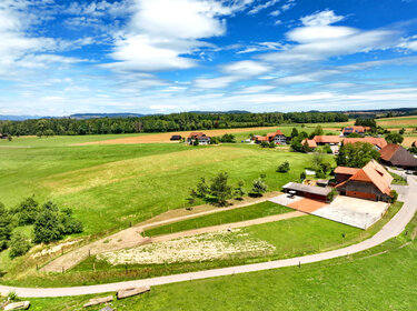 Alles flaches Gelände im Stall und die Lage des Stalles führt innert kürzerster Zeit, in das vielseitige, abwechslungsreiche Ausreitgebiet mit div. Wäldern kurzen und längeren Ausflügen hoch zu Ross.