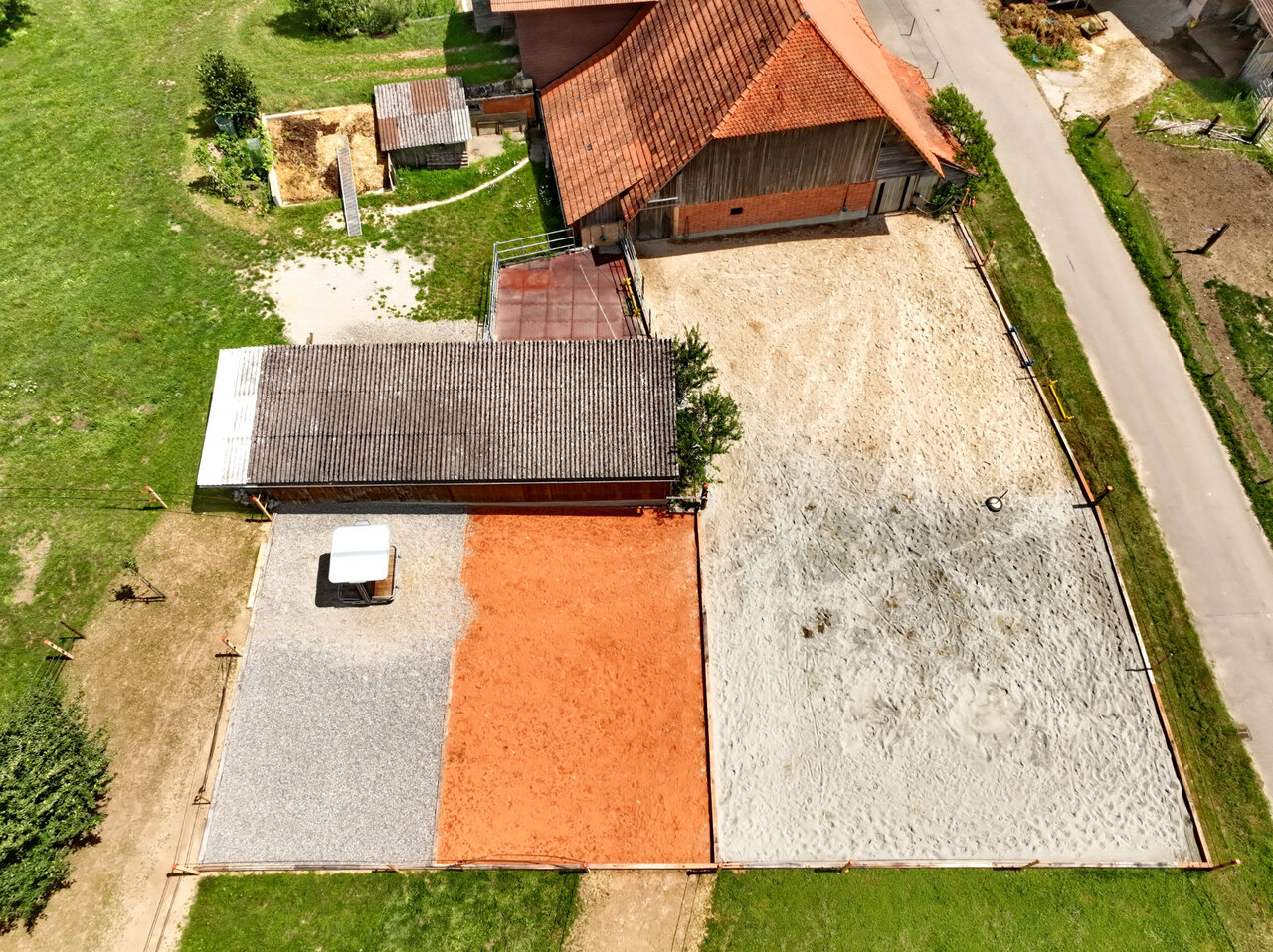 Da ist inbegriffen: Morgen/Abendstall Aufgaben wie misten und Heuautomat befüllen, grundsätzliche Stallaufgaben inkl. befestigten Plätzen mit div. Materialien wie Ziegelsand und Rundkies 234qm beleuchbares - und abtrennbares Sandvierreck, Naturtrail nützen.Mistabfuhr, Strom und Wasser. Weiden.