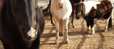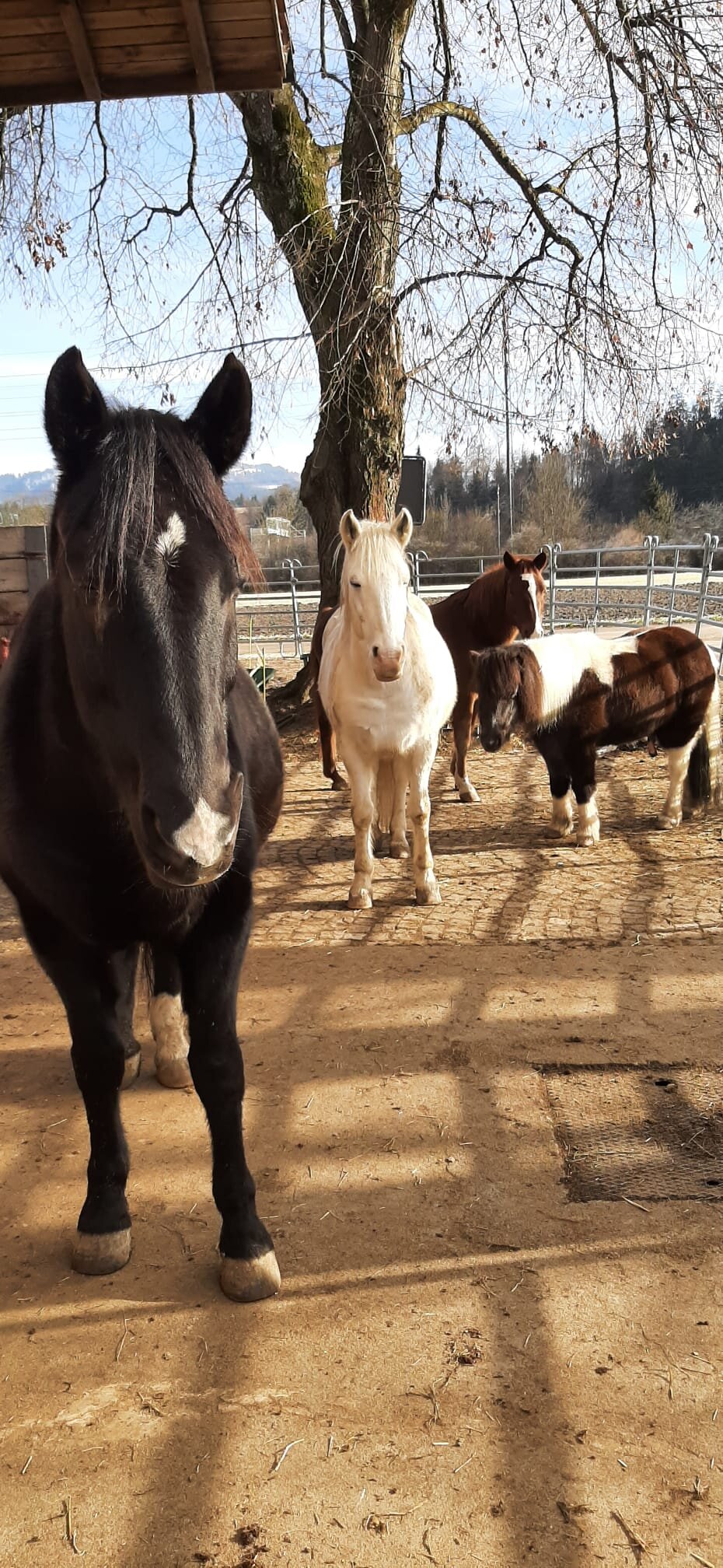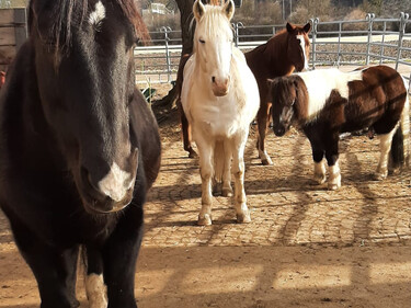 Offenstallplätze in Kiesen,in gemischter Gruppe,barhuf unter 165,da unser Stall nur 240 hoch ist im innen Bereich. Viel Weidegang,Diverse Fress und Liegebereiche,schönes Reigebiet Teil od.Vollpension Max.10 Pferde