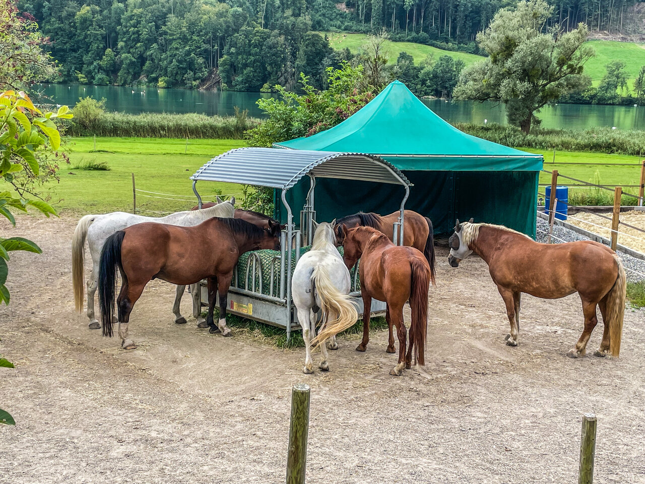 3033 wohlen b bern Wir haben in unserem grossen freilaufstall noch 1 platz in einer 9er gruppe und 1 platz in einer 17er gruppe frei. Die plätze wären mit eine nachtboxe (nur wintermonate ca 3monate) sonst leben sie in ihren gruppen. Wir suchen offenstall und gruppenhaltung gewohnte pferde/ponys. Seit über 30 jahren leben wir mit, und um das pferd, ständig damit bedacht, dem pferd ein so natürliches umfeld wie möglich zu bieten. Was gibt es bei uns: - grosses befestigtes freilaufareal das 2x täglich gemistet wird mit direktem weidezugang der über 280 tage offen steht und die pferde selber wählen was sie möchten. Im winter wenn es der boden zulässt, ist die weide tagsüber offen. 24h heu in mehreren raufen, dazu 1xtäglich kraftfutter individuell zusammengestellt hafer,gerste,mais (im preis inbegriffen) es ist auch möglich eigenes futter und zusätze mitzubringen und wir verfüttern es gerne - neu sanierter reitpatz 20x40m mit licht und bewässerungsanlage - geheizte sattelkammer mit dusche/wc und kaffee-ecke - schönes reitgebiet mit galoppbahn gleich in der nähe, - hängerparkplatz (25.-/monat) - wir entwurmen selektiv, kotproben 2 mal im jahr (im preis inbegriffen) Preis 750.- Besichtigung jederzeit möglich und fragen werden gerne beantwortet.