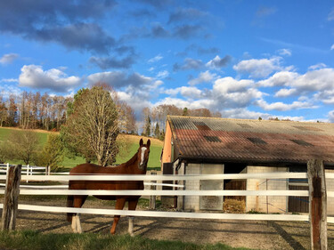 Winter freier Zugang zu grosszügigem Sandplatz, Reitplatz, in Stallung integrierter Wasch- und Pflegebereich Anhängerparkplatz