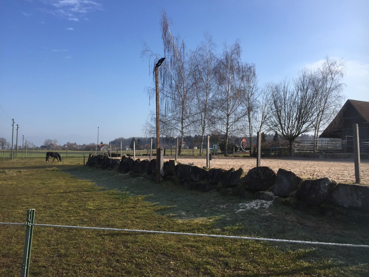 Reitplatz 20m mal 40m, Sattelkammer und Toillette und Sitzplatz vorhanden.
