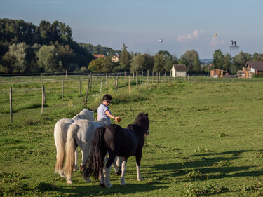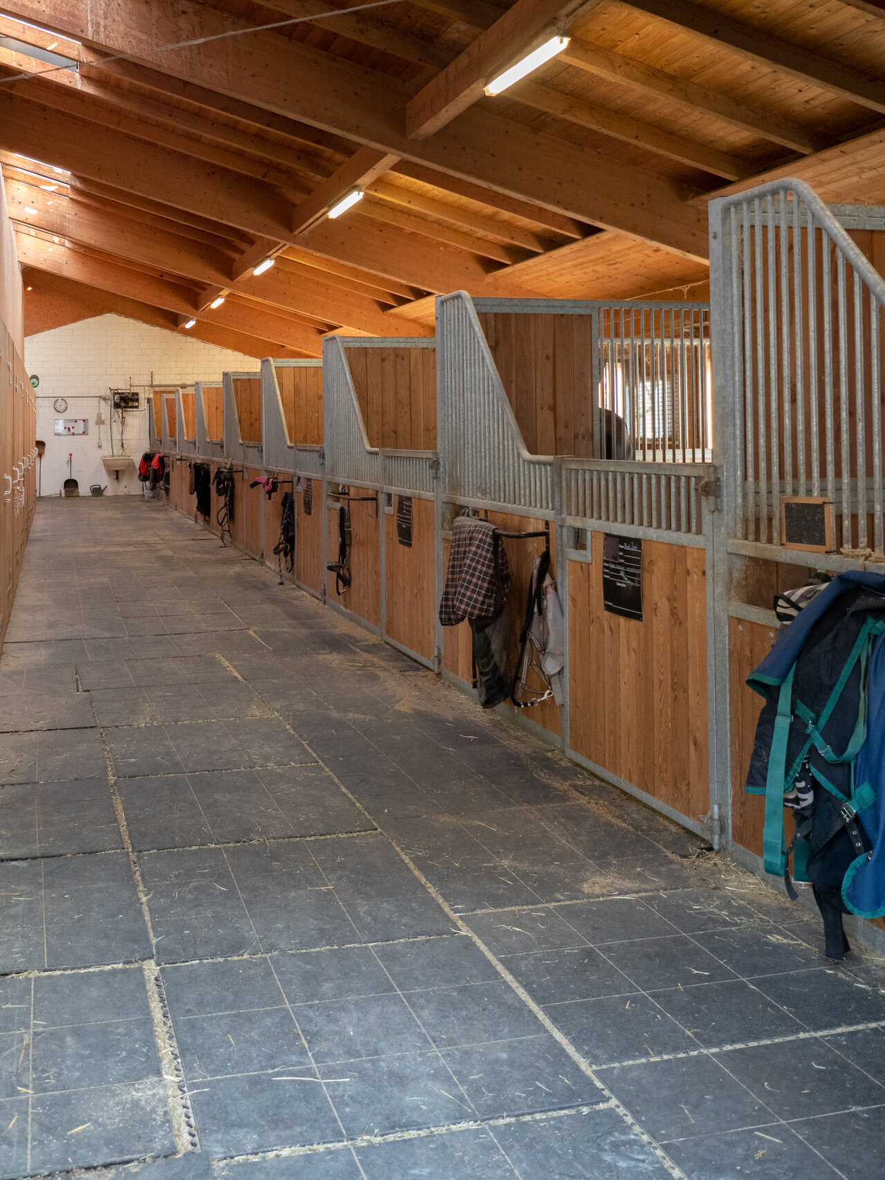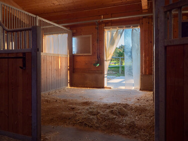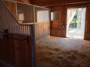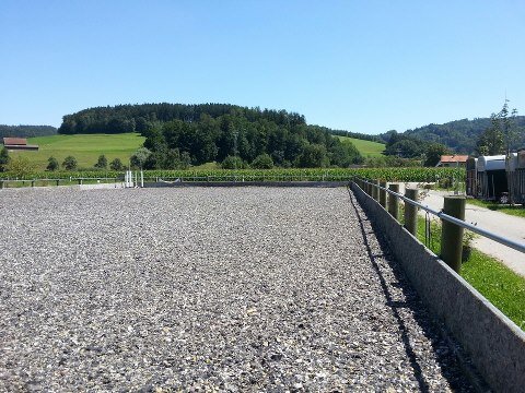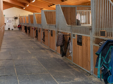 Grosszügige Auslaufboxen, grosser Doppelsattelschrank, Trocknungsraum für Decken, Waschplatz, Vitafloor (Vibrationsplatte), ausgezeichnetes Pferdeheu oder auf Wunsch Heulage, ein fairer, ruhiger, freundlicher Umgang mit dem Pferd gehören bei ihm genauso dazu wie grosszügige Boxen (ab 16m2) und Weiden. Das schöne Ausreitgelände bietet vielfältige Trainingsmöglichkeiten genauso wie die Halle und der Reitplatz.