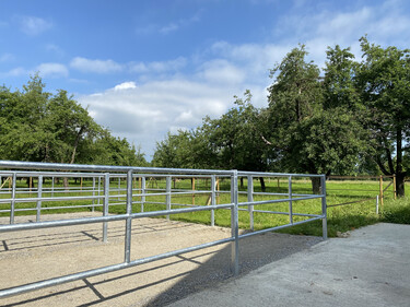 Wir sind ein kleiner ruhiger Privatstall im Grünen, weg von lästigem Verkehr und Hauptstrassen mit 10 Auslaufboxen (Auslauf eingesandet) 6 davon sind mit direktem Weidezugang.
