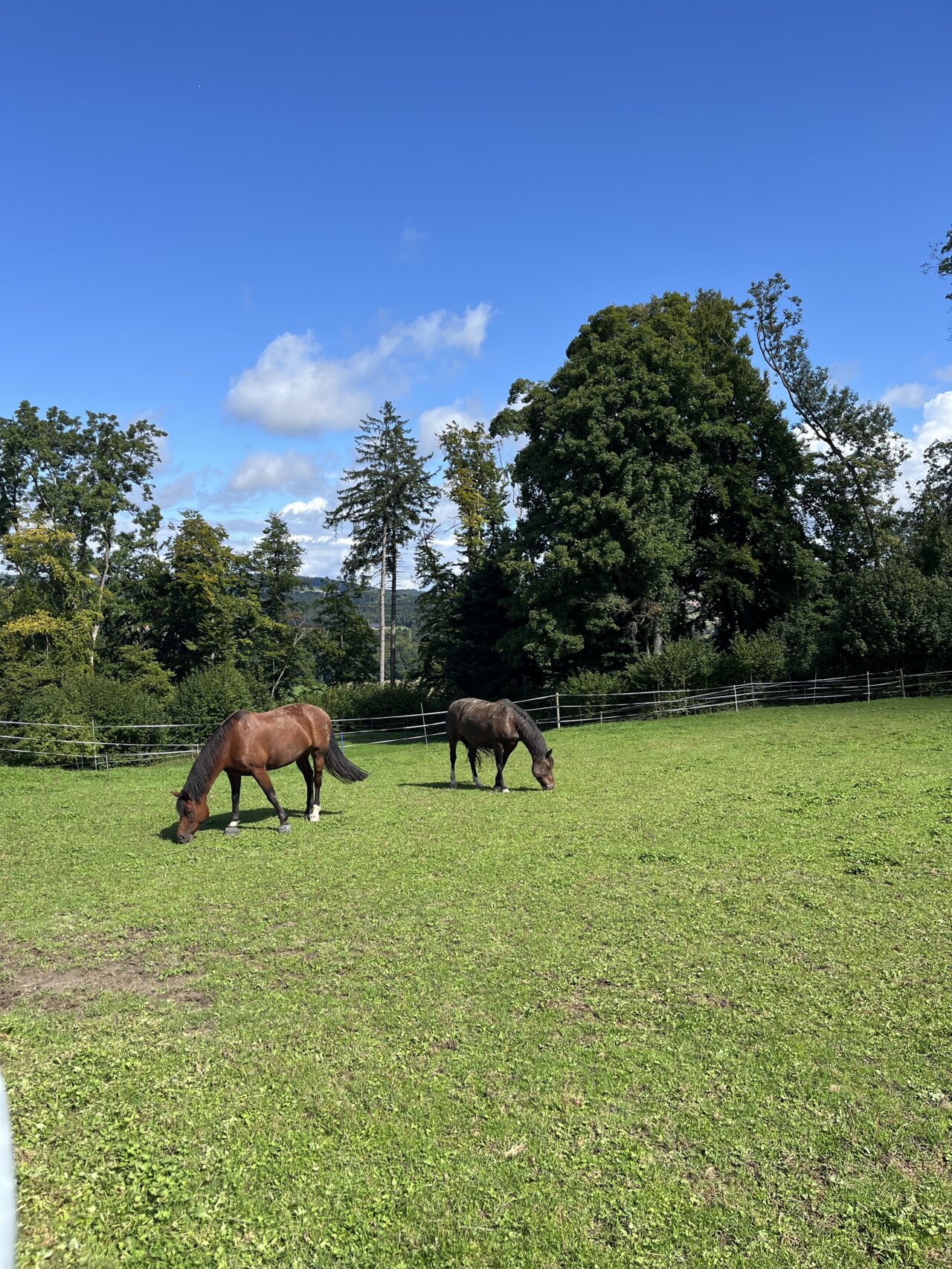 Wir teilen uns die Stallarbeit, was zwei-bis dreimaliger Stalldienst pro Woche bedeutet. Heu steht ad Libidum zur Verfügung.