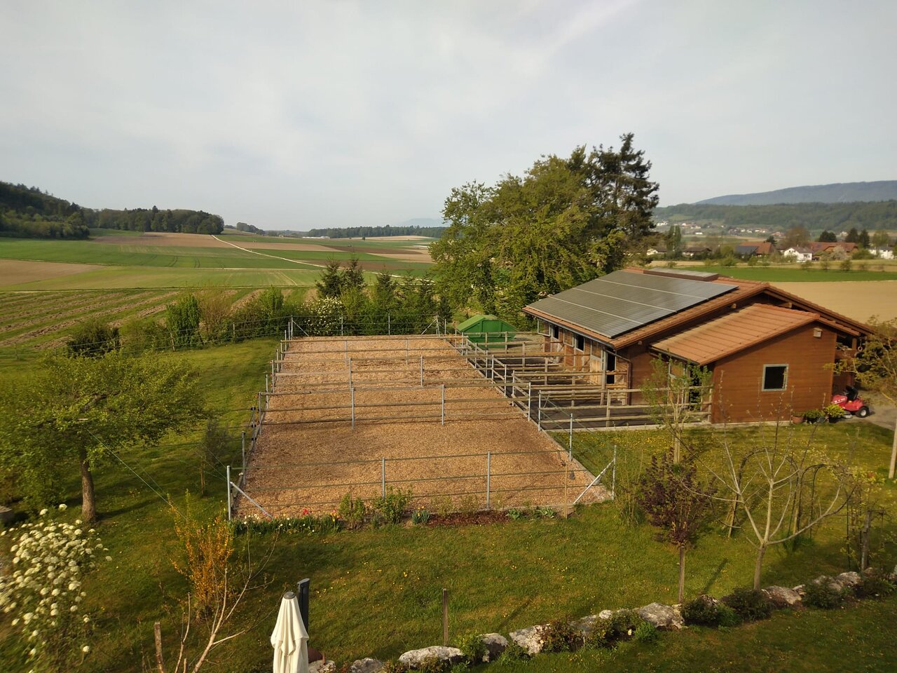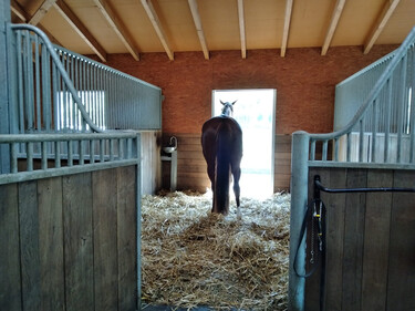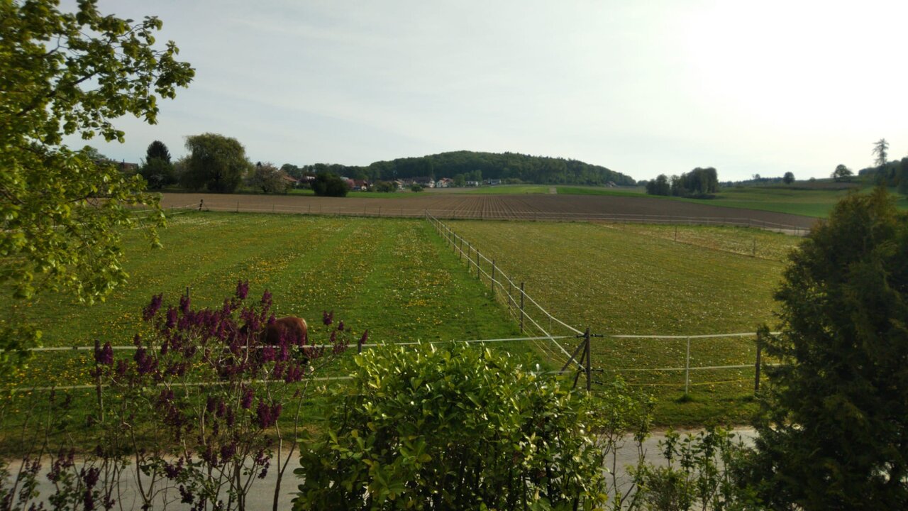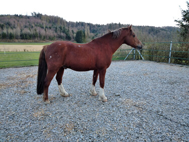 Mitten in einem wunderschönen Ausreitegebiet gelegen, mit liebevoller Betreuung und weitläufigen Weiden ist eine helle, grosse Auslaufbox frei, inklusive: grosszügiger, sauberer Einstreu (Späne oder Stroh), erstklassigem Heu, 5x täglicher Fütterung, heizbarer Selbsttränke, Abspritzplatz, täglichem Weidegang im Sommer und wenn möglich im Winter, geheizter Sattelkammer mit Warmwasser. Kleines Plätzli mit top Boden, 23x27m, verschiedene Reitplätze/Reithalle sind in 20-30 Minuten zu Pferd/Hänger erreichbar.
