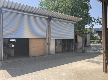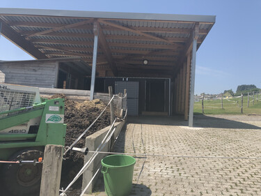 Jedes Pferd hat seine eigene Boxe mit direktem, festem Auslauf und bei schönem Wetter direktem Zugang zu seiner eigenen Weide.