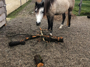 🌳Auf der gesamten Anlage befinden sich zahlreiche pferdegerechte Bäume und Sträucher, welche das Nahrungsangebot der Pferde bereichern.