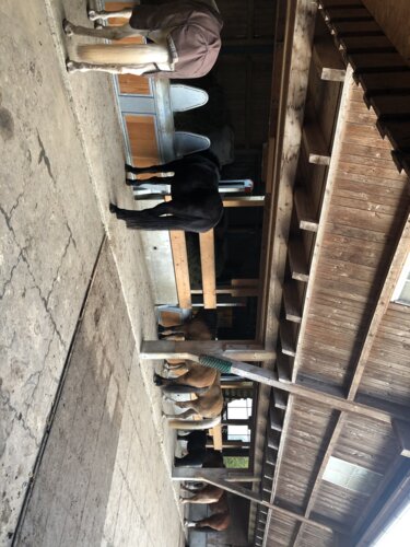 Schöner, geräumiger Offen-Aktivstall. 4 mal Fütterung mit eigens produziertem Bio-Pferdeheu. Waldboden-Einstreu. Grosse Weiden.