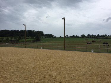 Willkommen auf unserem idyllisch gelegenen, ruhigen, familiären Pferdehof, wo sich alles um das Wohl der Pferde dreht. Bei uns findet ihr Pferd Erholung und Entspannung in schönen, ruhigen Auslaufboxen / grosse, gesicherte und mit Kamera austattbare Abfohlboxen / eine separate Hengstboxe mit sehr grossem Auslauf / zwei Offenställe für Kleingruppe (2-4 Pferde).Von unserem Stall aus reiten Sie direkt los ohne eine Strasse zu überqueren und können stundenlange Ausritte in einem wunderschönen, weitläufigen Reitgebiet geniessen. Was wir bieten:- grosse, helle Auslaufboxen mit Gummimatten / Einstreu Bio-Waldboden oder Stroh- Sommer-und Winterweide- Pferdeheu aus Eigenproduktion- 3 x täglich Kraftfutter (eigenes darf mitgebracht werden) und Heu- 2 x täglich Boxen misten sowie Bollen nehmen beim Mittagsstall- beleuchteter Reitplatz 20 x 40m mit Swing Ground (ganzes Jahr reitbar, gefriert nicht)- 2 Wasch-und Putzplätze- grosse Sattelkammern mit genügend Stauraum für Material (1 grosser Schrank, 2 Sattelhalter, 3-4 Zaumzeughalter pro Pensionär)- Reiterstübli mit Lavabo und WC- Anhängerparkplatz- Beritt / Betreuung der Pensionspferde bei Ferienabwesenheit- Reitunterricht / Hilfe bei PferdeausbildungRufen Sie uns an unter Tel. 079 955 76 72 um einen unverbindlichen Besichtigungstermin zu vereinbaren. Wir freuen uns auf Ihren Besuch.